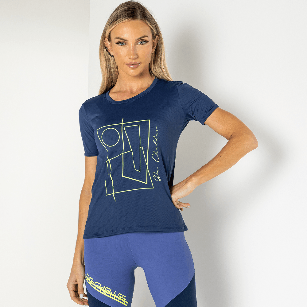 Blusa; Manga Curta; Tecido Dry; Silk; Modelo veste tamanho P; Proteção UV50+.