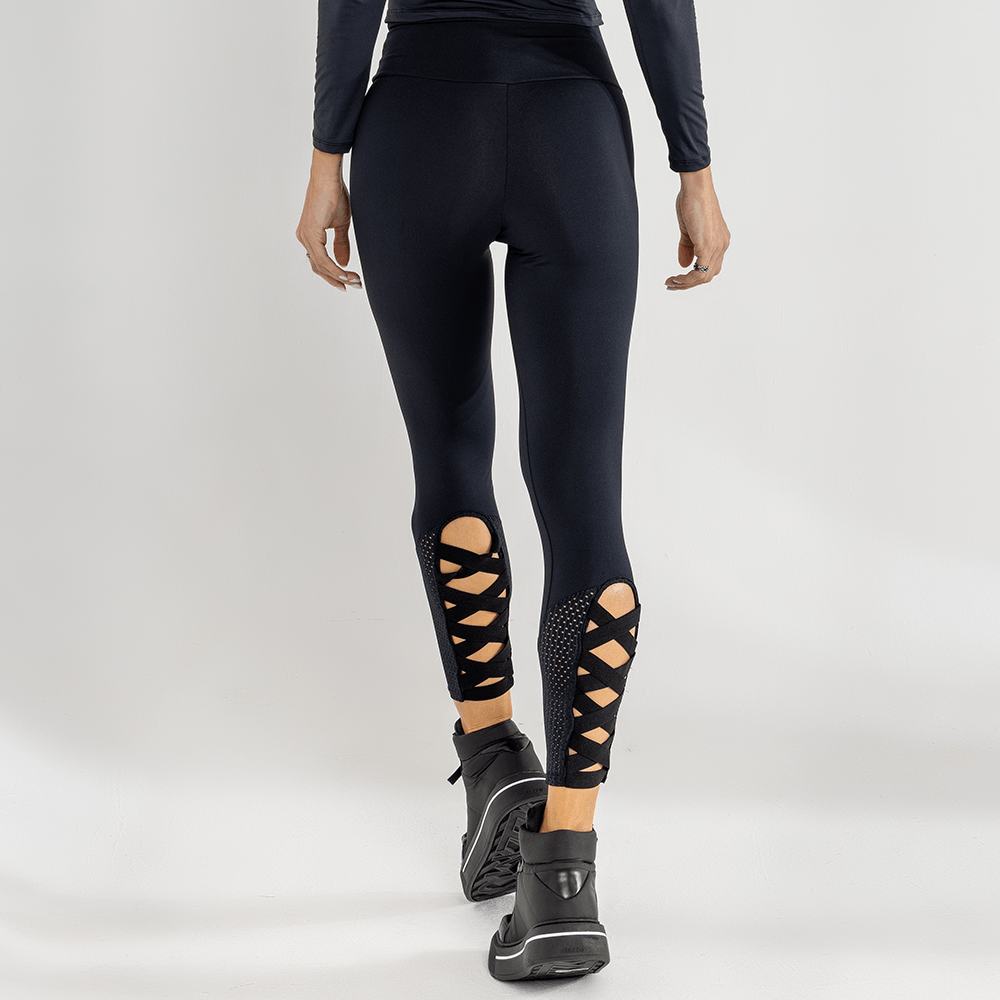 Calça Fuseau; Cós Anatômico; Detalhe Telas; Detalhe Elástico Cruzado; Tecido alta tecnologia e compressão; Modelo veste tamanho P; Proteção UV50+.