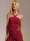 • Decote cruzado que traz elegância ao look fitness