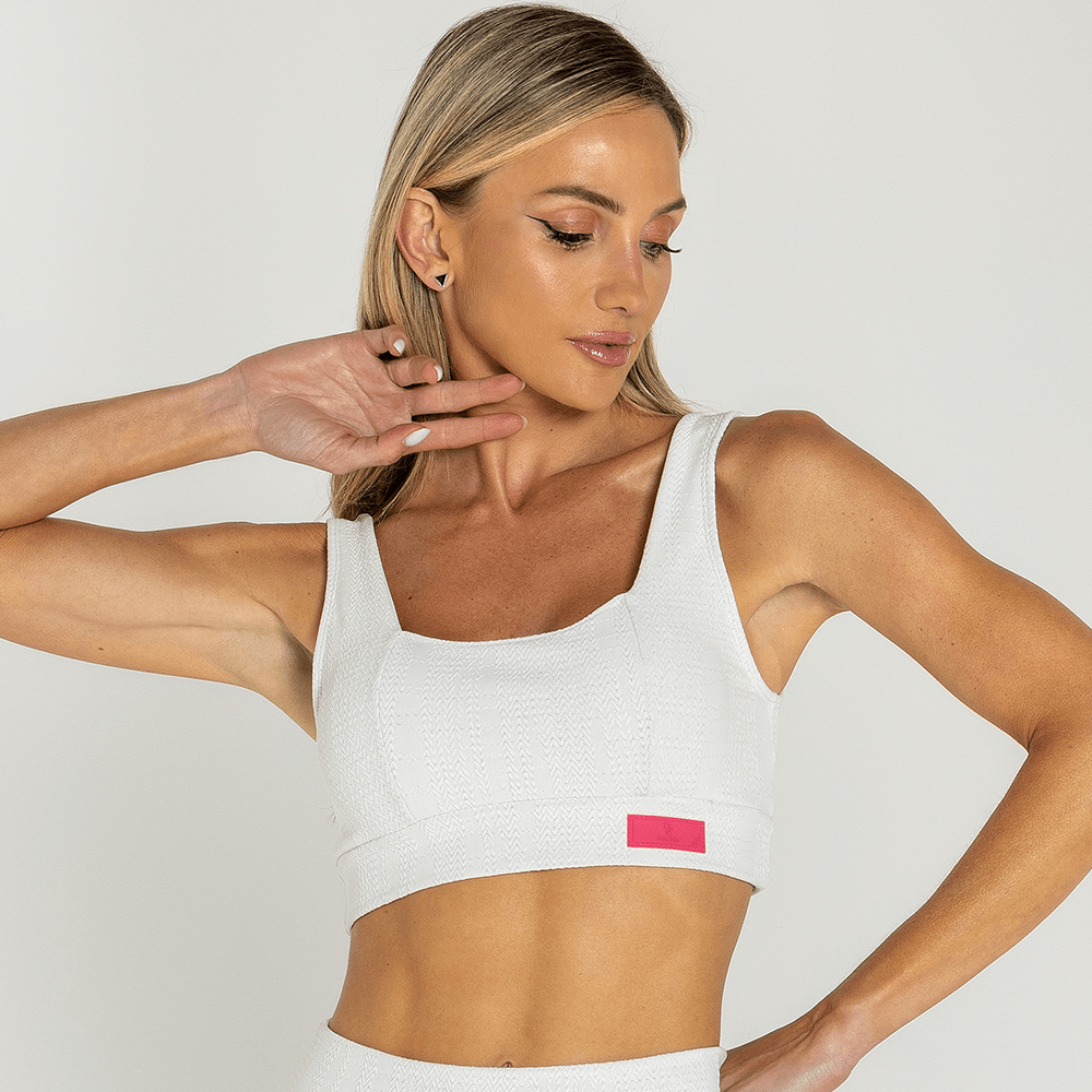 Top; Bojo Removível; Decote Quadrado; Recorte Quadrado; Tecido alta tecnologia e compressão; Modelo veste tamanho P; Proteção UV50+.