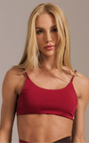 O modelo curto valoriza o shape, com decote redondo frontal e costas decotadas que destacam a silhueta. As alças paralelas finas com elástico embutido e a tira elástica nas costas proporcionam conforto e sustentação, enquanto o bojo removível garante praticidade e ajuste perfeito.